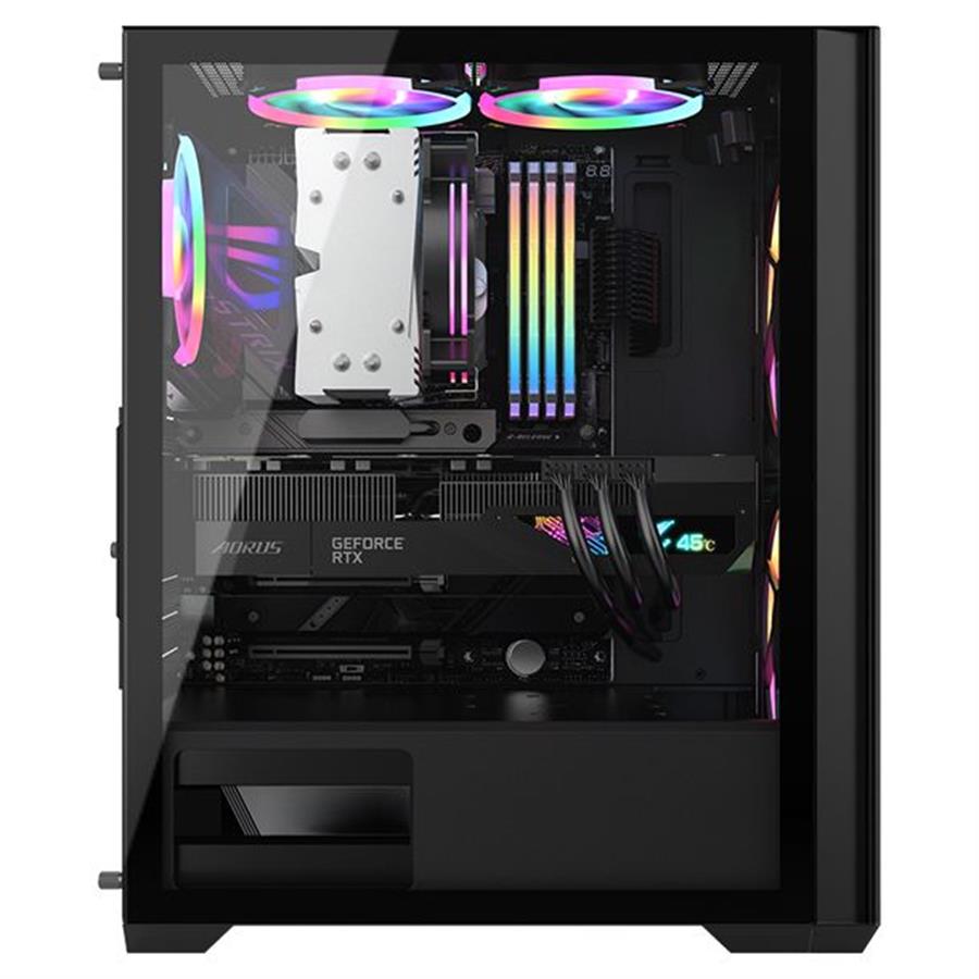 Paneles: Cuenta con un panel lateral de vidrio templado o acrílico (dependiendo del modelo exacto) y un panel frontal perforado o de tipo mesh para maximizar el flujo de aire.